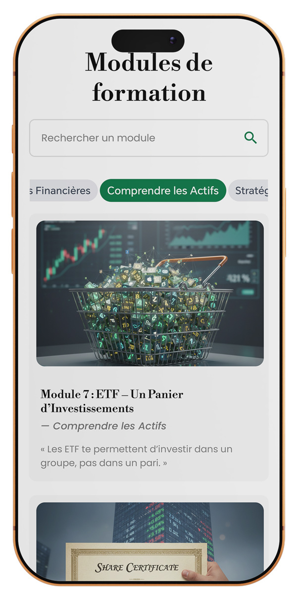 Apprenez à comprendre les actifs financiers — ETF, actions, obligations — avec des explications simples et adaptées à votre quotidien.
