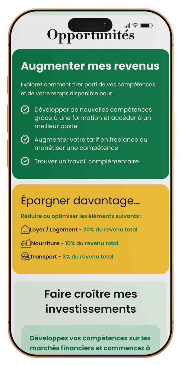 Des modules conçus pour vous accompagner pas à pas, du budget de base jusqu’aux stratégies d’investissement.