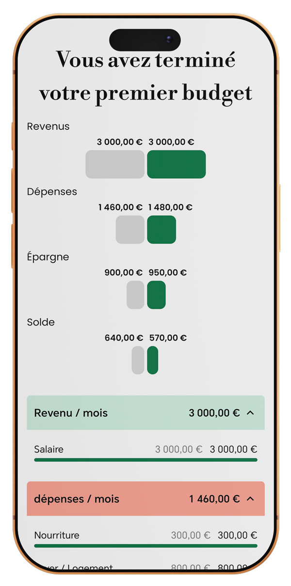 - "Cette application est un vrai coach financier dans ma poche ! J'adore le suivi d'objectifs et le fait de pouvoir comparer mes performances avec des standards. En 6 mois, j'ai économisé pour mes vacances ET commencé un fonds d'urgence. Incroyable !" Emily Carter Montréal, Canada 5.0